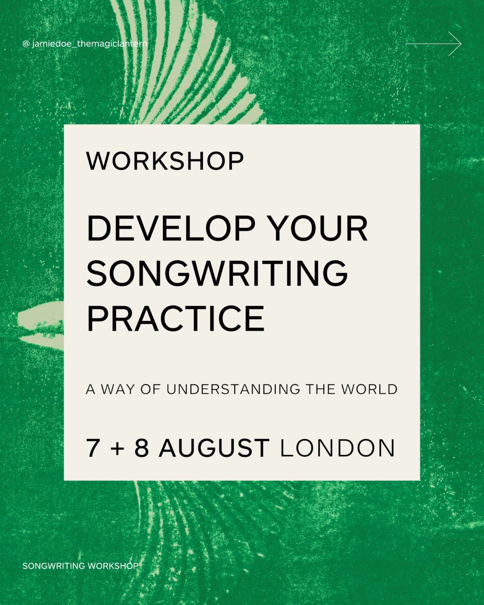 On 7 & 8 August I am running a two day workshop, for experienced and emerging songwriters alike, unpicking my songwriting process at the beautiful Sands Films in London.